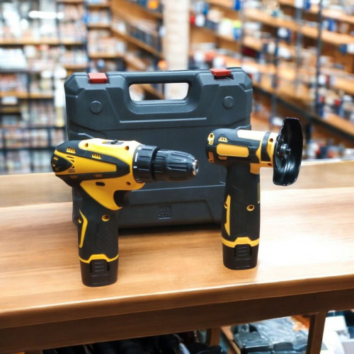 Набор аккумуляторного инструмента миниболгарка + шуруповерт 12V (2 акб) Желтый