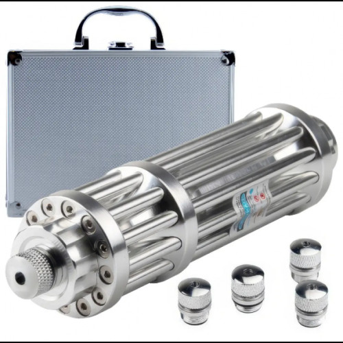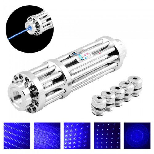 Мощнейшая Лазерная указка YX-B017, синий луч, 5 насадок в Кейсе + защитные очки