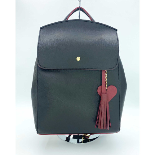 Рюкзак сумка жіночий «Серце» чорний з червоним