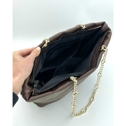 Сумка жіноча 67105 від виробника «Welassie» Україна, колір коричневий, матеріал екошкіри високої якості. Сумка відкривається за допомогою блискавки. Всередині сумка на щільній підкладці, має дві кишені: на блискавці та відкриту. Ручки сумки виконані у вигляді ланцюжка. У комплекті є плечовий ремінь, максимальна довжина 135 см.